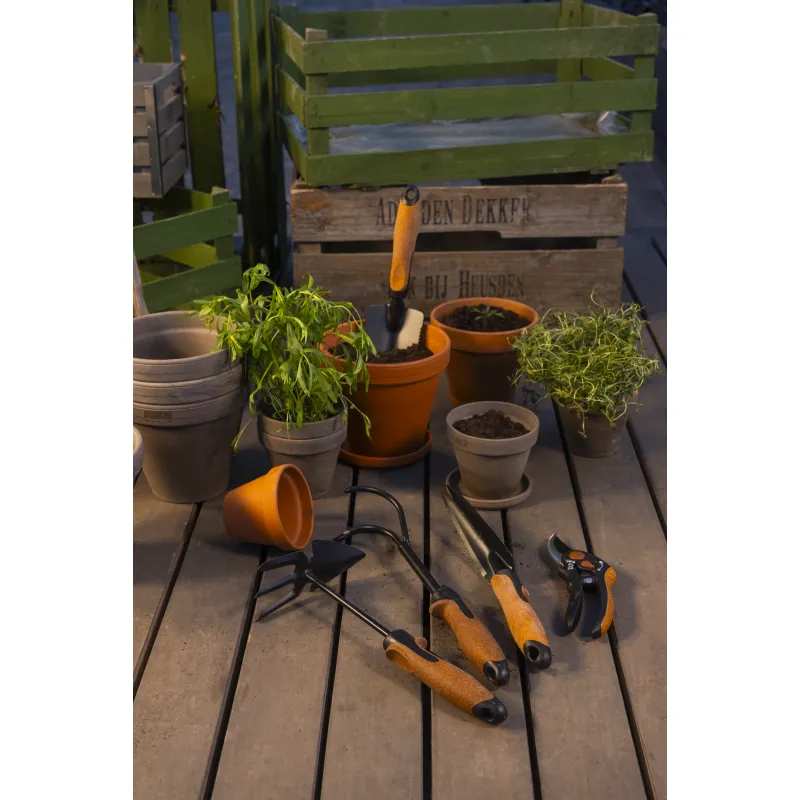 Рукоятка кукушки Brücke выполнена из легкого, мягкого и приятного на ощупь материала, имитирующего пробку. Она обеспечивает надежный и удобный захват, что облегчает и ускоряет работу. Рабочая часть изготовлена из прочной стали, которая справляется даже с твердыми почвами.