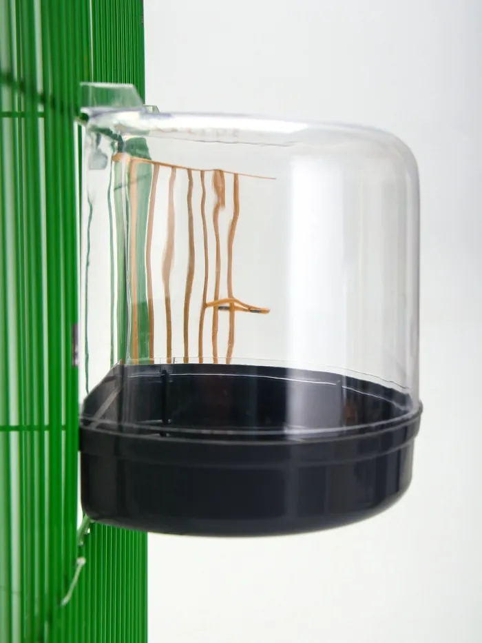 - Практичность: Легко крепится к прутьям клетки. Быстро снимается для очистки — гладкая поверхность не задерживает загрязнения.