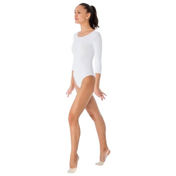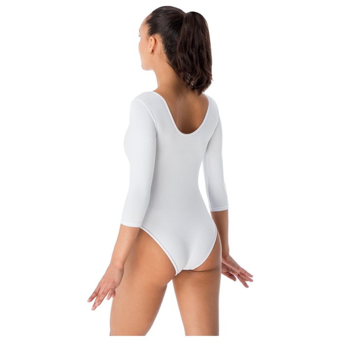 Купальник – незаменимый помощник в балетных и гимнастических тренировках. Рукава традиционной длинны три четверти и классический выкат спинки подчеркнут красоту и изящество. Полотно высокого качества, из которого выполнен купальник, отлично держит форму и легко стирается.
