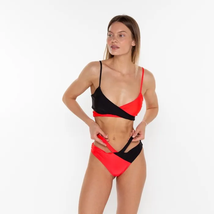 Купальник раздельный двухцветный женский, чёрный, розовый, размер 44 — Характеристики