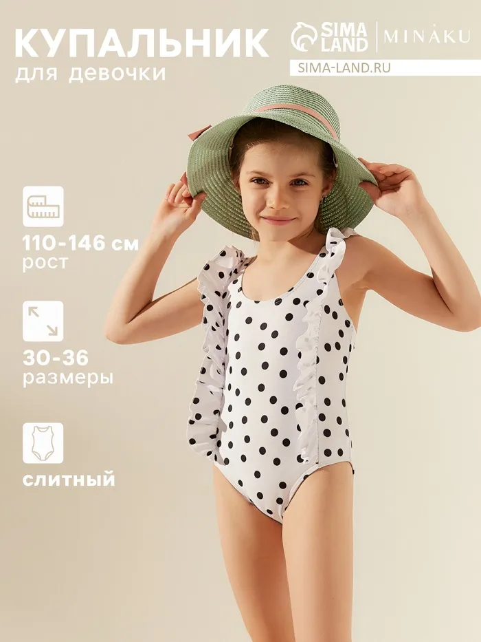 Купальник слитный детский MINAKU цвет белый рост 116-122 см — Характеристики