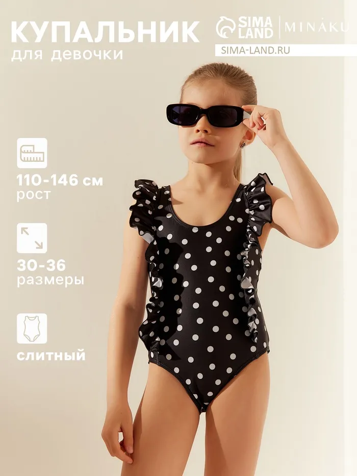 Купальник слитный детский MINAKU цвет чёрный рост 128-134 см — Характеристики