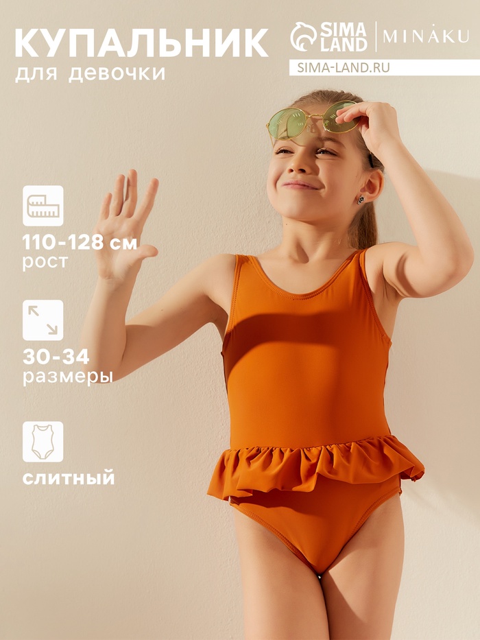 Купальник слитный детский MINAKU цвет коричневый, рост 116-122 см — Характеристики
