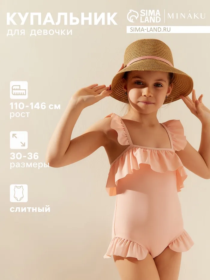 Купальник слитный детский MINAKU цвет розовый, рост 128-134 см — Характеристики
