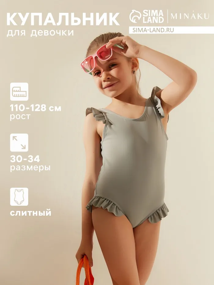 Купальник слитный детский MINAKU, цвет серый, рост 122-128 см — Характеристики