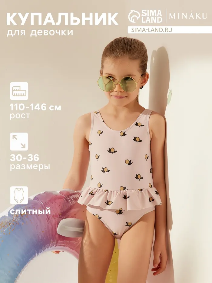 Купальник слитный для девочки MINAKU, розовый, рост 110-116 см — Характеристики