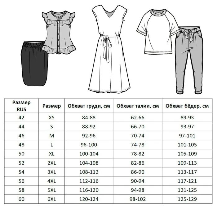 Обхват бёдер, см: 97 - 101