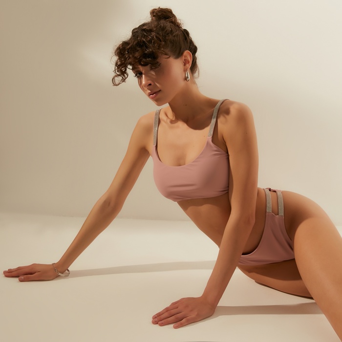 Купальник женский раздельный MINAKU со стразами цвет бежевый, размер 46 — Характеристики