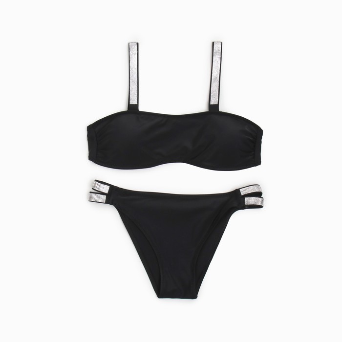 Купальник женский раздельный MINAKU со стразами цвет чёрный, размер 48 — Характеристики
