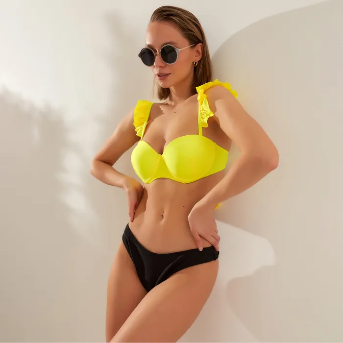Купальник женский раздельный MINAKU цвет жёлто-чёрный, размер 48 — Характеристики