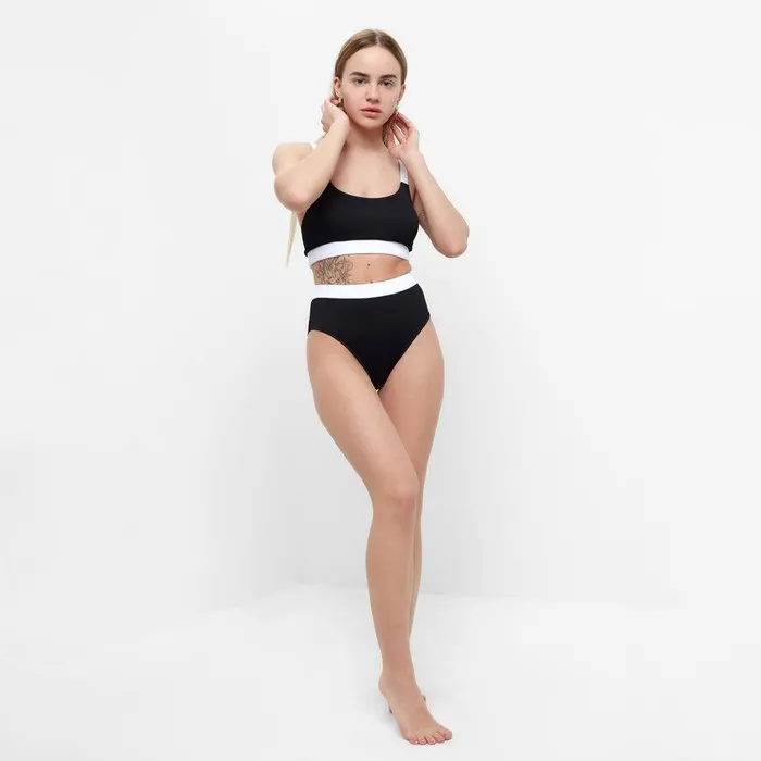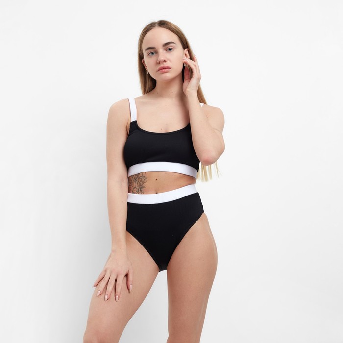 Купальник женский раздельный MINAKU с ремешком цвет чёрный, размер 48