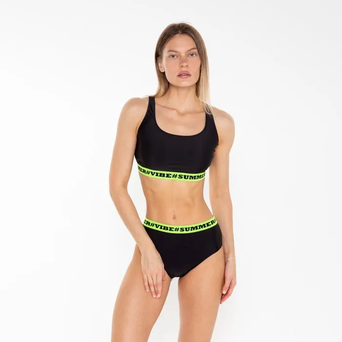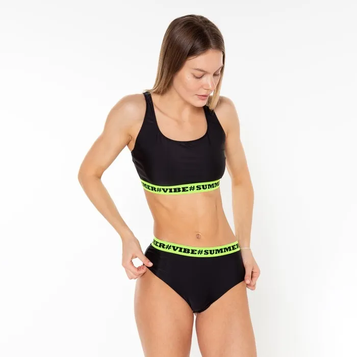 Купальник женский раздельный, цвет чёрный/салатовый, размер 42 — Характеристики