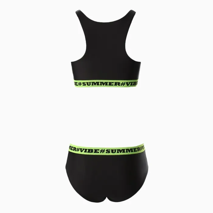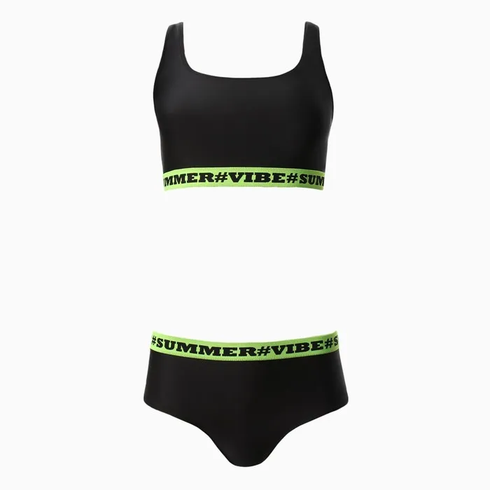 Купальник женский раздельный, цвет чёрный/салатовый, размер 42