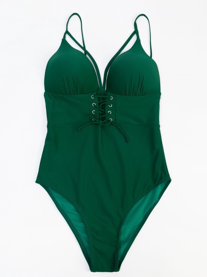 Купальник женский слитный MINAKU на шнуровке, цвет зелёный, размер 50 — Характеристики