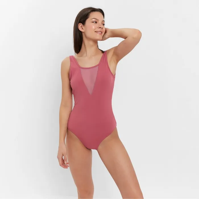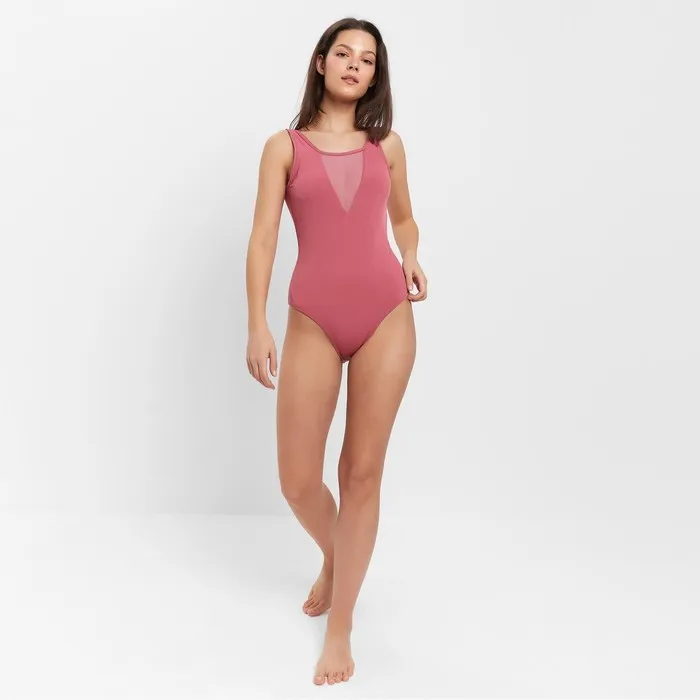 Купальник женский слитный в рубчик MINAKU однотонный цвет розовый, размер 44 — Характеристики