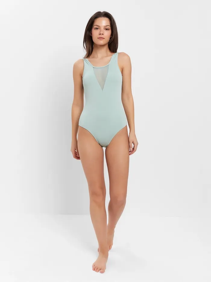 Купальник женский слитный в рубчик MINAKU однотонный цвет светло-зелёный, размер 48 — Характеристики