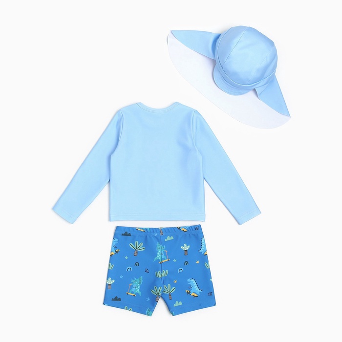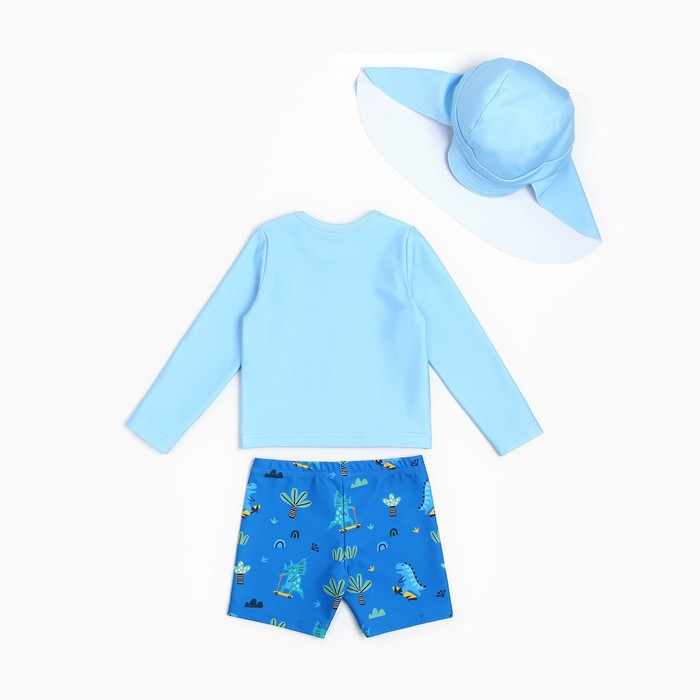 Купальный костюм детский (лонгслив, шортики и панамка) Крошка Я «Дино», рост 80-86 см, голубой — Характеристики