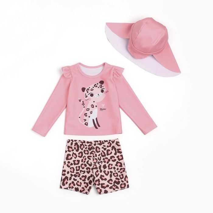 Купальный костюм детский (лонгслив, шортики и панамка) Крошка Я «Лео», рост 92-98 см, розовый — Характеристики
