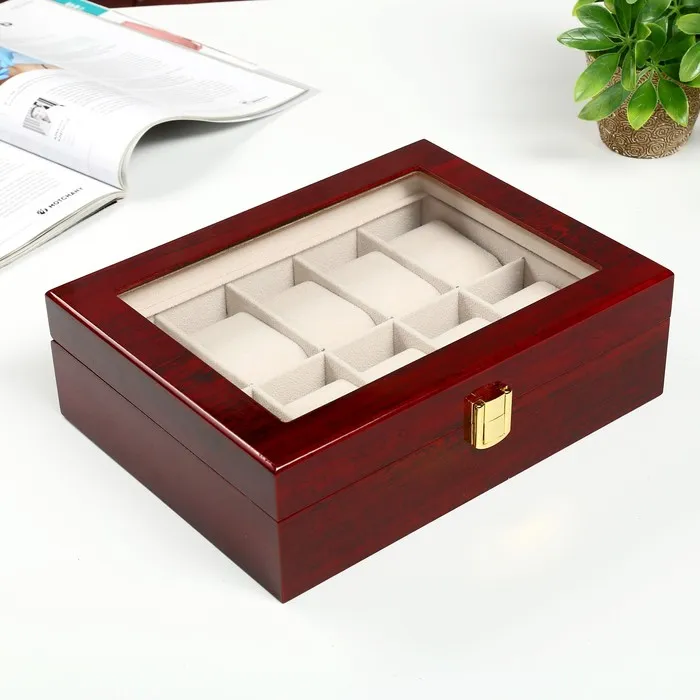 Шкатулка для часов 10 отделений «Красно-коричневая», дерево, лак, 8×26×20 см