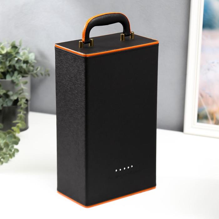 Шкатулка подарочная под 2 бутылки «Чёрная с оранжевой вставкой», дерево, искусственная кожа, 4 предмета, 34.5×20×12 см