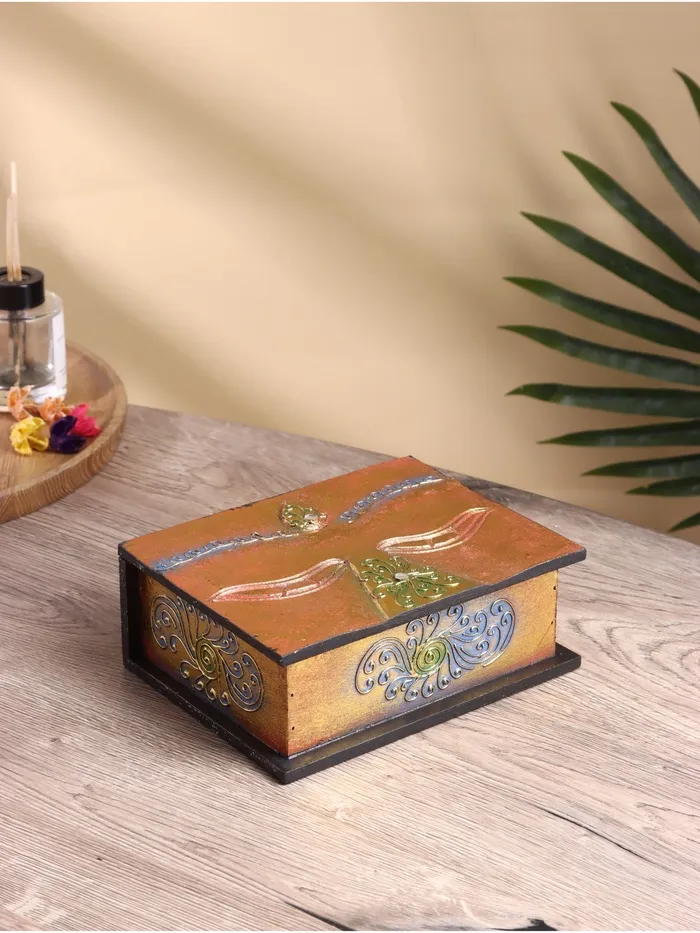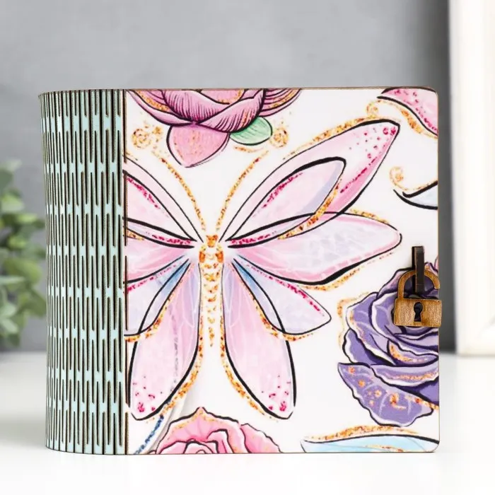 Деревянная шкатулка-книга «Розы, бабочки» 14×14 см