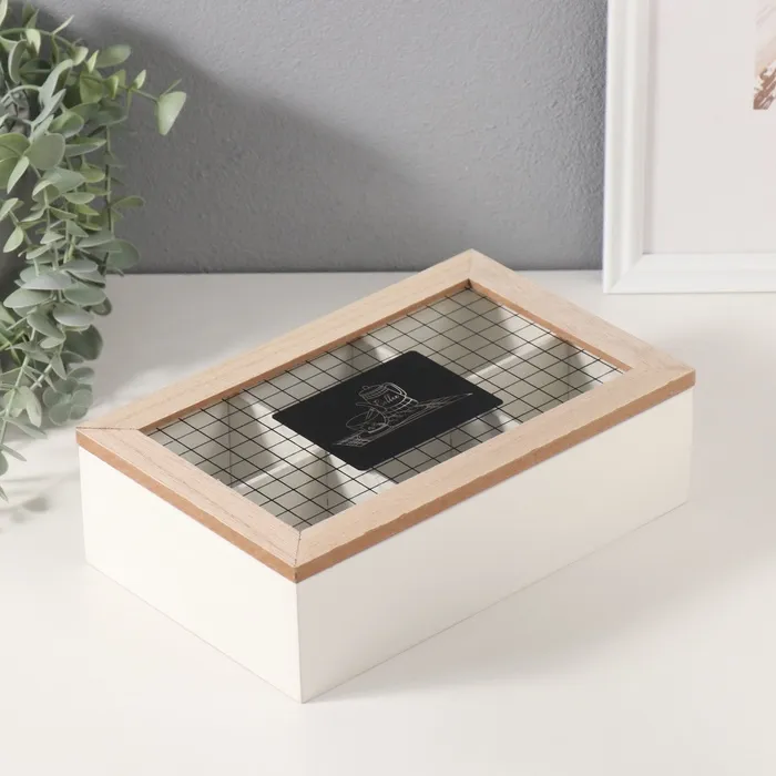 Шкатулка для украшений 6 делений «Чайничек с кофе», дерево, 23.8×15×7 см