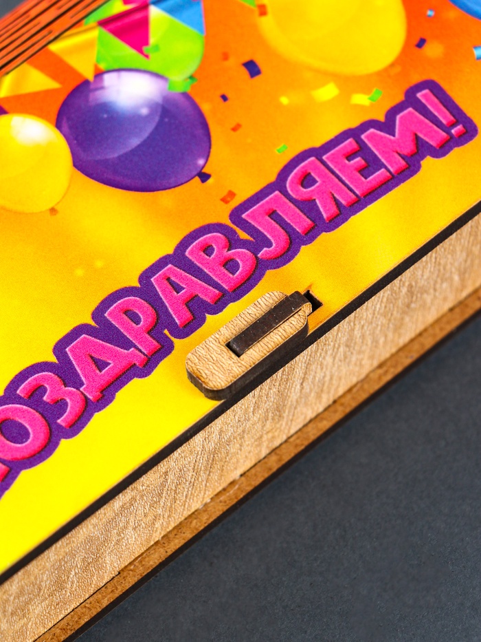 Эта прямоугольная шкатулка, созданная из высококачественного материала ЛХДФ, демонстрирует практичный дизайн и прочность. С её помощью можно организовать пространство и добавить изюминку в ваш интерьер. Печать с тематической надписью добавляет нотку индивидуальности и торжественности.