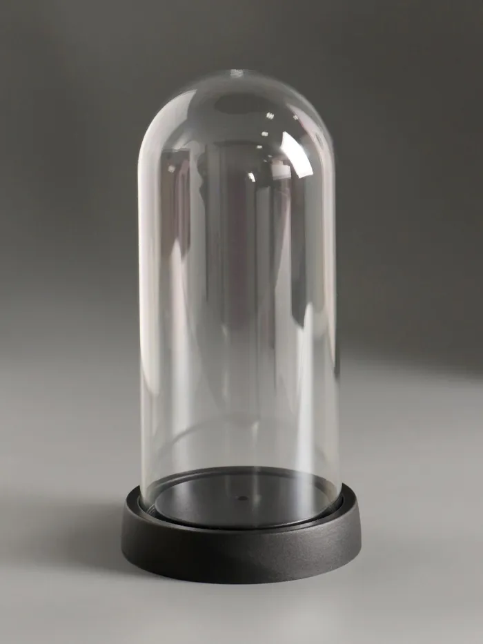 Элегантность и функциональность сочетаются в этой колбе на пластиковой подставке, которая станет стильным акцентом в любом интерьере. Прозрачный купол диаметром 9,5 см и высотой 19 см идеально подходит для демонстрации небольших коллекционных предметов, флористических композиций или памятных сувениров, создавая атмосферу изящества и уюта.