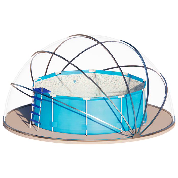 Купол-тент предназначен для сохранения чистоты и комфортной для купания температуры воды в бассейне. Модель подойдёт для наземных каркасных бассейнов и для бассейнов, вкопанных в землю.