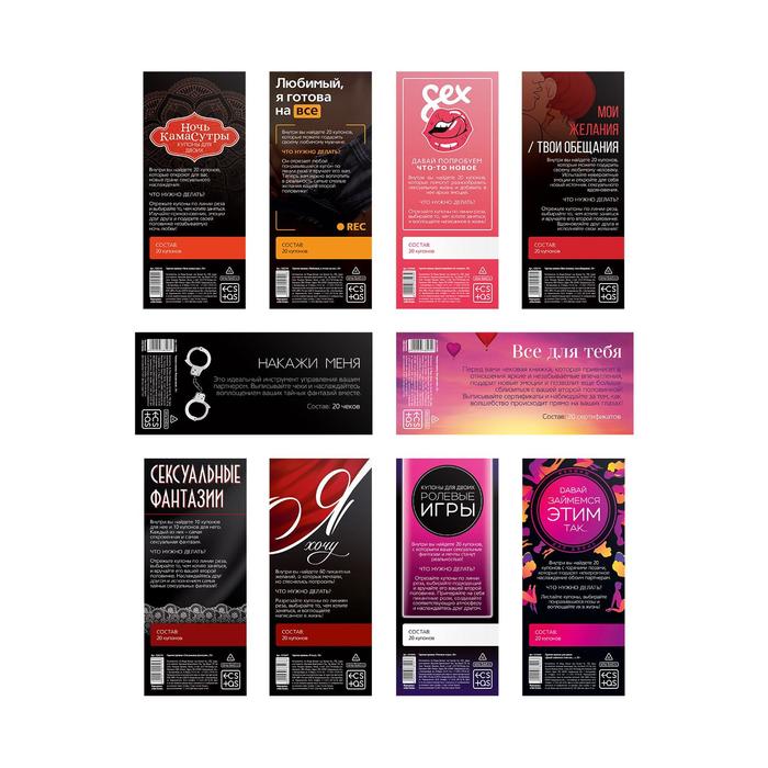 Выберите вид купонов, которые будете использовать сегодня. Хотите попробовать новую ролевую игру? Или исполнить эротическое желание своей половинки? Смело вручайте выбранный купон и получайте наслаждение.