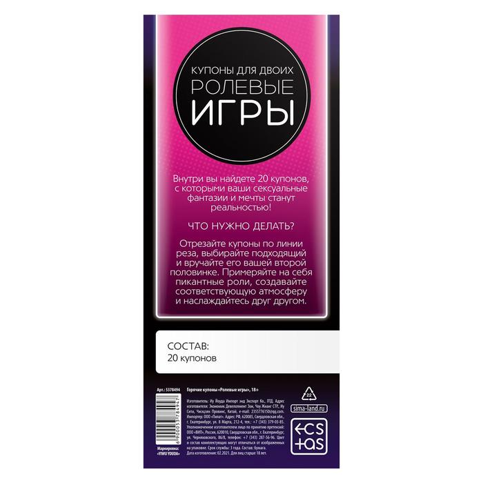 С этими купонами ваши сексуальные фантазии и мечты станут реальностью! Примерьте на себя невероятно пикантные роли и насладитесь друг другом.