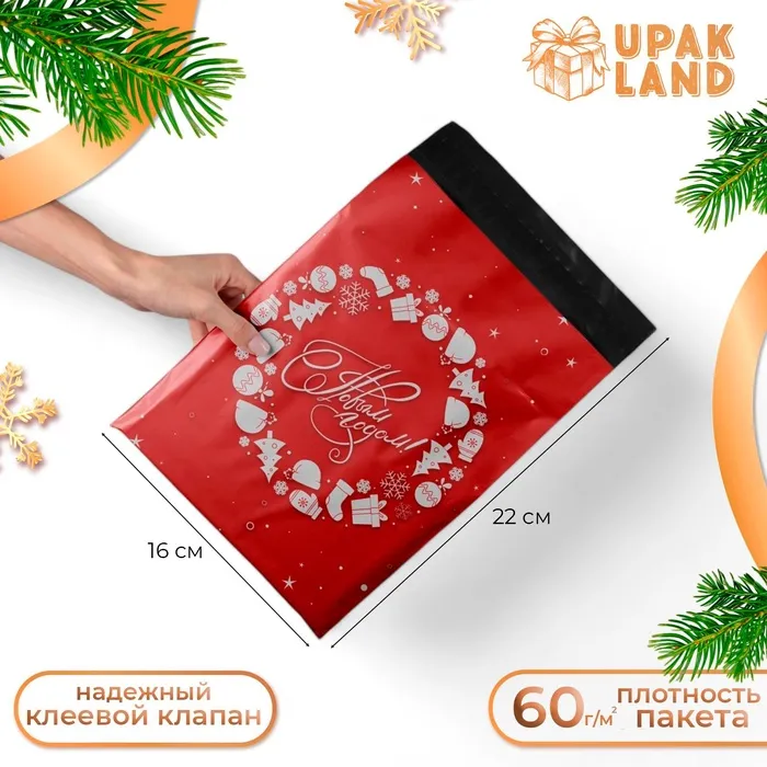 Курьерский пакет с клеевым клапаном новогодний, «С Новым годом», 16×22 см — Характеристики