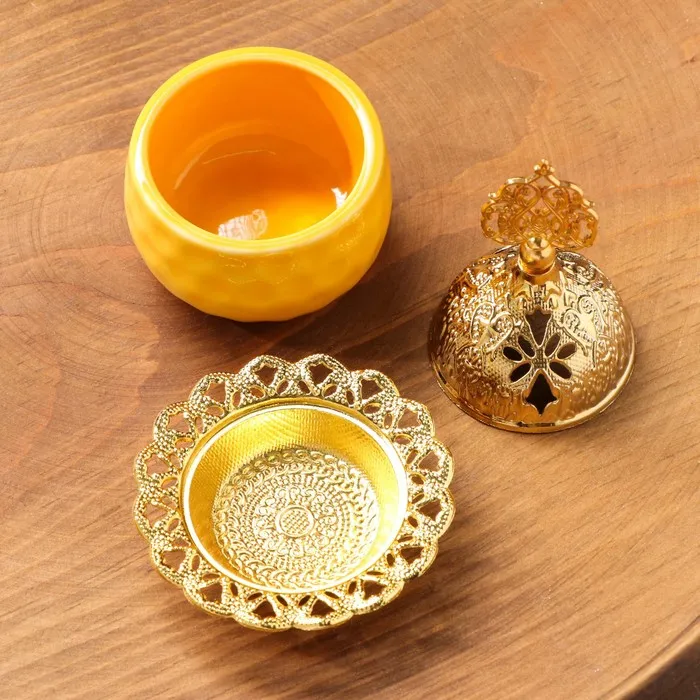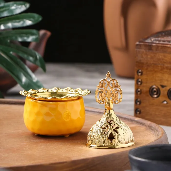 Курильница для благовоний порошковых и конусов "Мешочек", желтый, 10,5х6,9 см