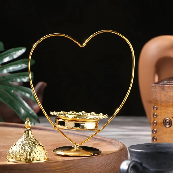 Курильница для благовоний порошковых и конусов "Сердце", золотистый, 14,5х13,5 см
