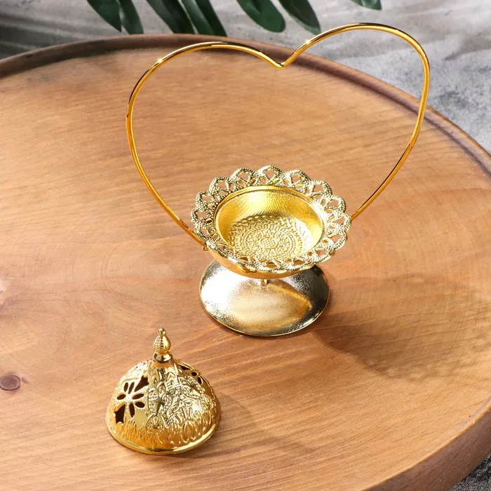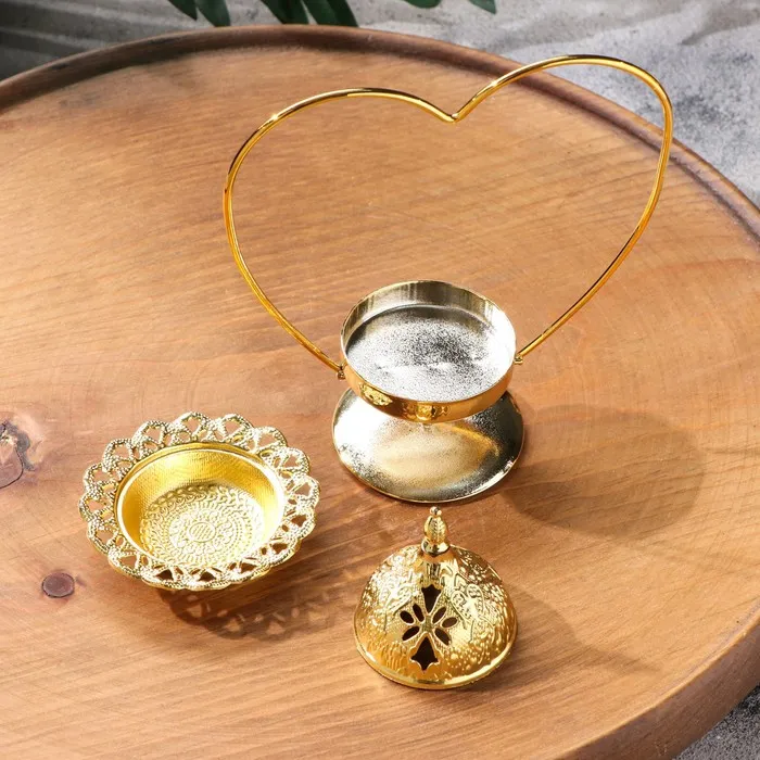Курильница для благовоний порошковых и конусов "Сердце", золотистый, 14,5х13,5 см — Характеристики