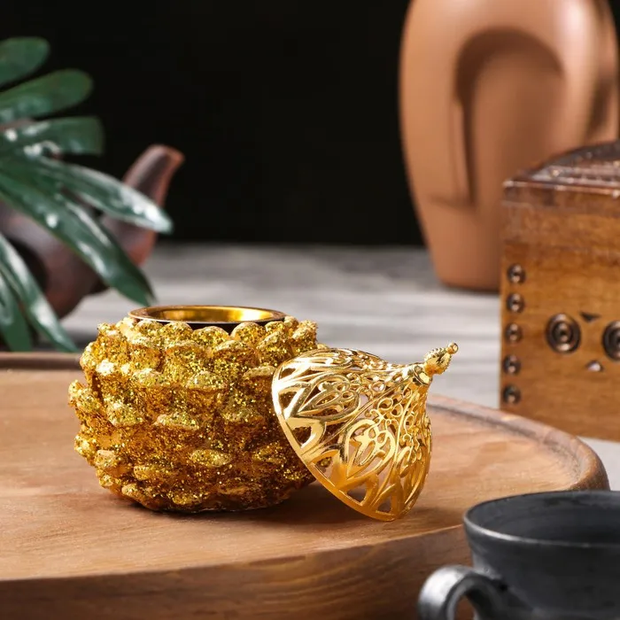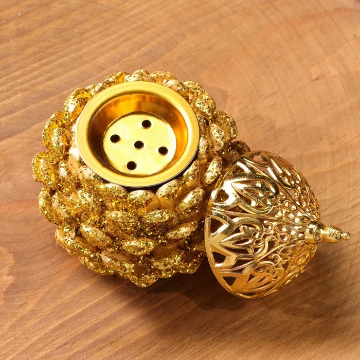 Курильница для благовоний порошковых и конусов "Шишка", золотистый, 9,5х8,7 см