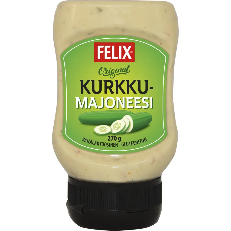 Вкусный огуречный майонез Felix подходит в качестве дополнения практически к любым блюдам, например, к гамбургерам, рыбе или курице, а также в качестве дип-соуса. Мягкий и свежий вкус огурца понравится всем. Felix огуречный майонез упакован в удобную бутылку, которую можно хранить крышкой вниз. Объем упаковки 275 г.