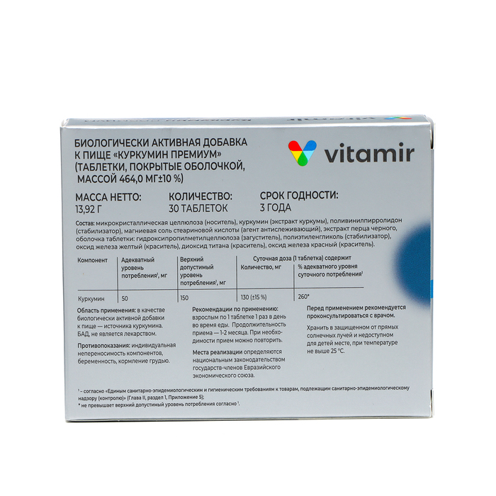Показания: в качестве биологически активной добавки к пище - источника куркумина. БАД, не является лекарственным средством.