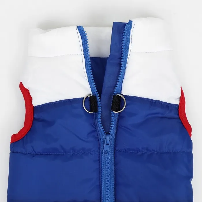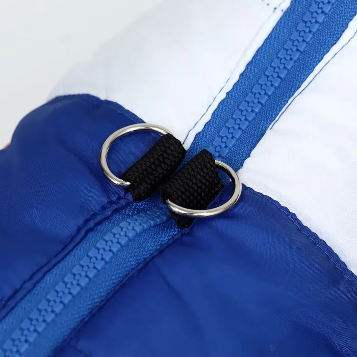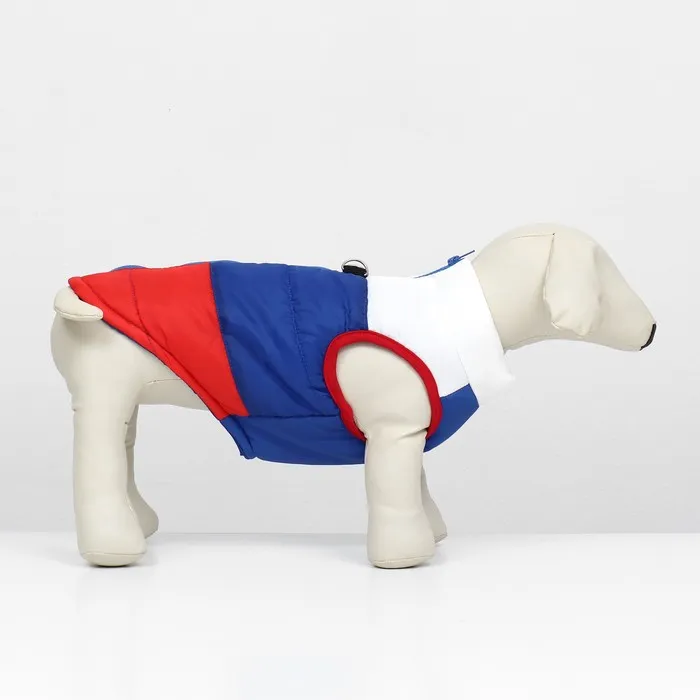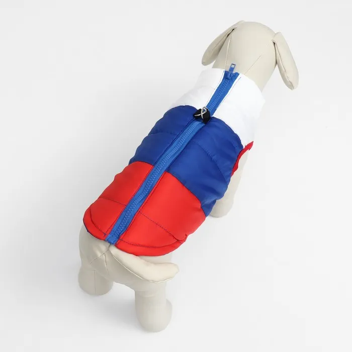 Теплая куртка для собак - уникальный аксессуар для прогулок с вашим питомцем!Куртка имеет оригинальный дизайн в патриотической цветогамме.Молния располагается по спинке питомца, что это позволяет легко надевать и снимать куртку, так же присутствует кольцо для поводка/рулетки для удобной прогулки.Наполнитель куртки - синтепон.Подойдет для собак мелких и средних пород. Вашей собачке будет комфортно гулять в дождливую погоду и она точно останется довольна!