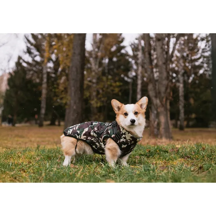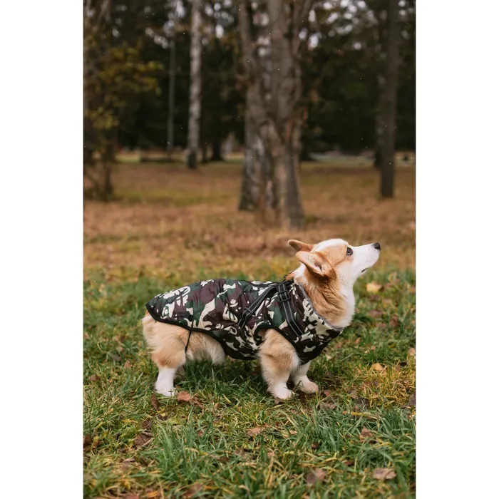 Расцветка камуфляжная позволяет собаке лучше скрыться в окружающей среде и выглядеть стильно и модно.
