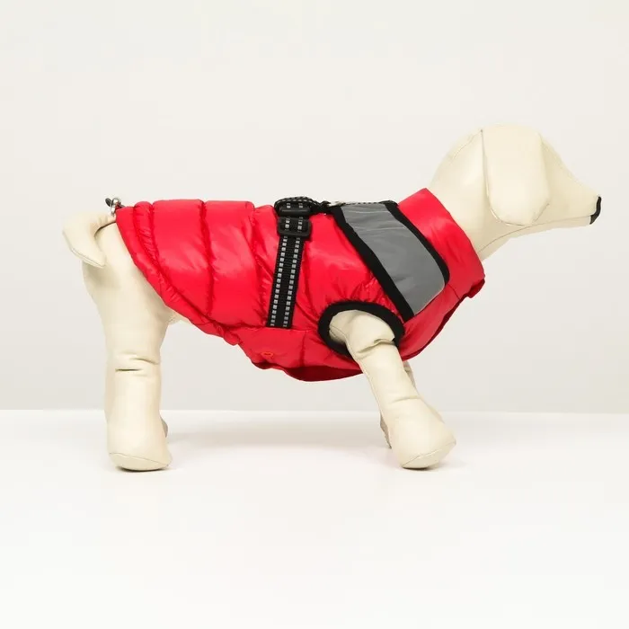 Куртка для собак со светоотражающей шлейкой, размер 16 (ДС 36, ОГ 46, ОШ 35), красная