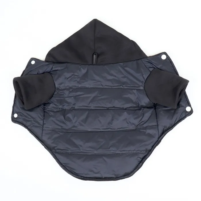 Особенностью этой куртки является наличие трикотажного капюшона и рукавов, это добавляет уюта и комфорта вашему питомцу.