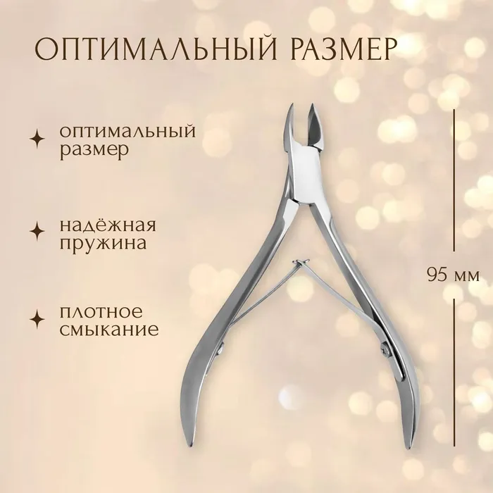 Инструмент для маникюра выполнен из нержавеющей стали, имеет плотное схождение лезвий и двойную пружину.