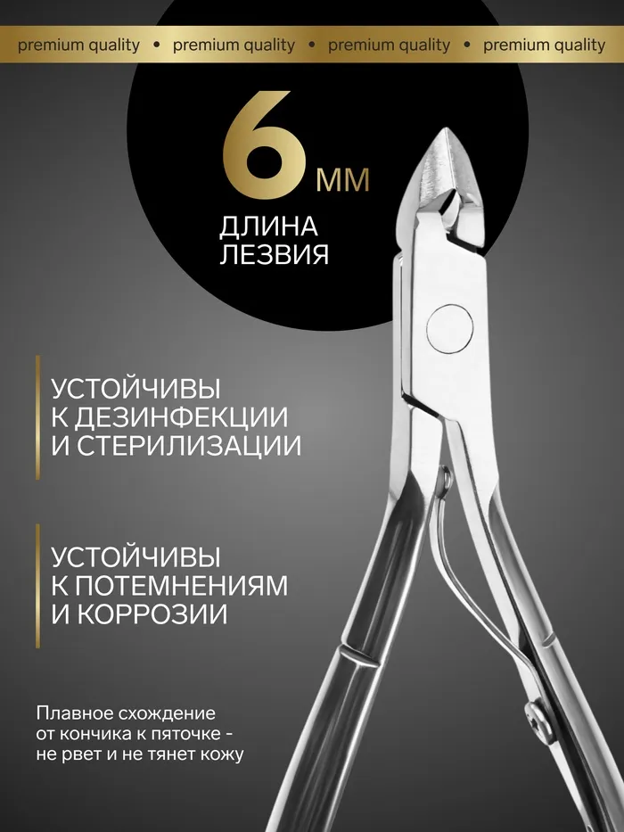 Кусачки маникюрные для кутикулы Premium, 10.2 см, длина лезвия-6 мм — Характеристики