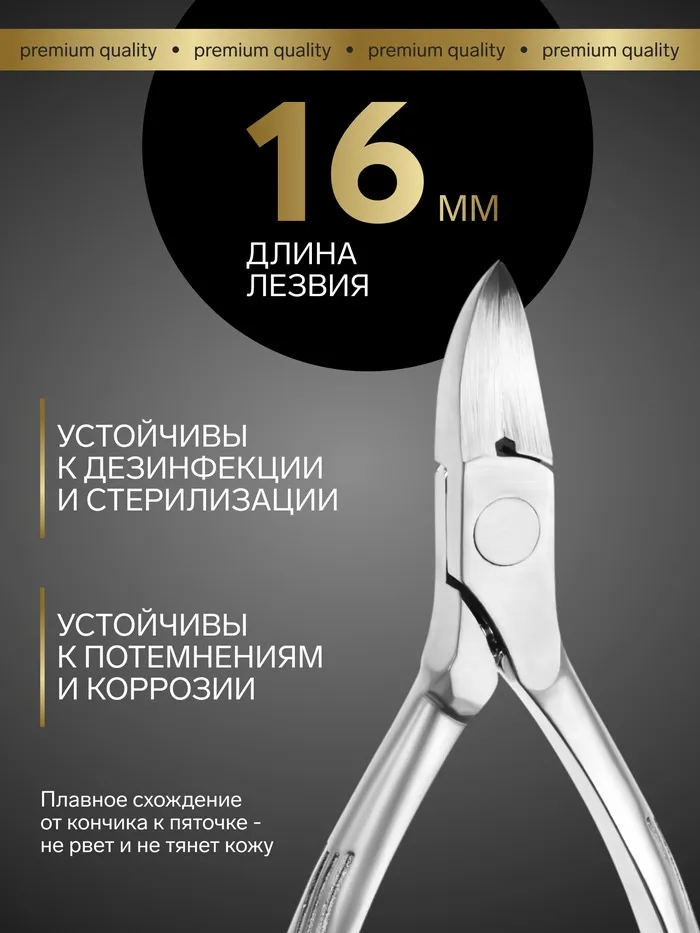 Кусачки педикюрные «Premium satin», скрытая пружина, 10.9 см, длина лезвия-16 мм — Характеристики
