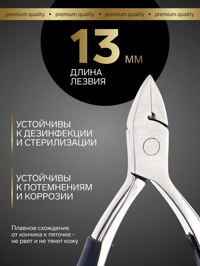 Кусачки педикюрные «Premium», скрытая пружина, прорезиненные ручки, 12.3 см, длина лезвия-13 мм, серые, серебристые — Характеристики