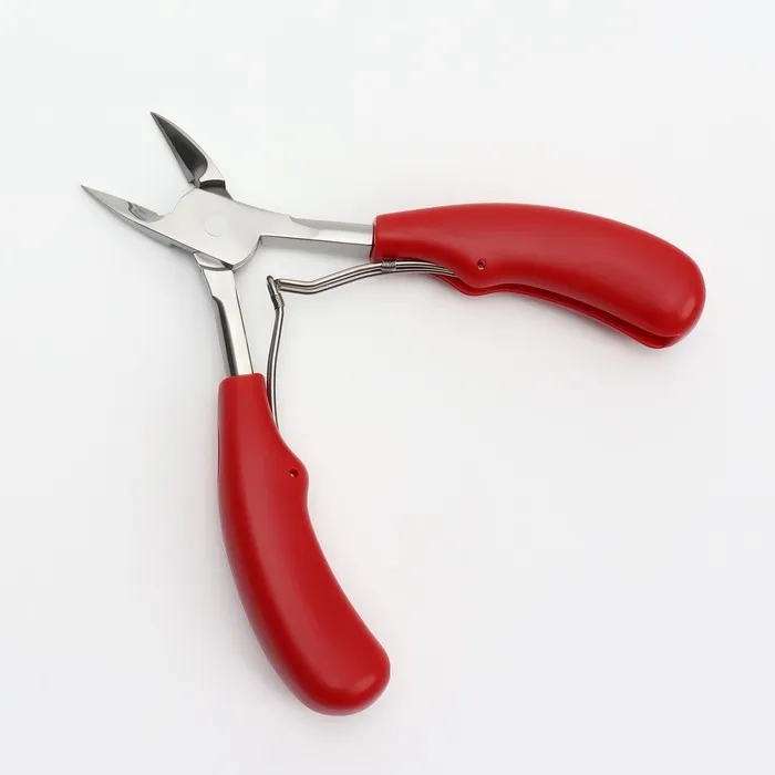 Кусачки педикюрные, с пластиковой ручкой, изогнутое лезвие, 13 см, длина лезвия-17 мм, серебристые, красные — Характеристики