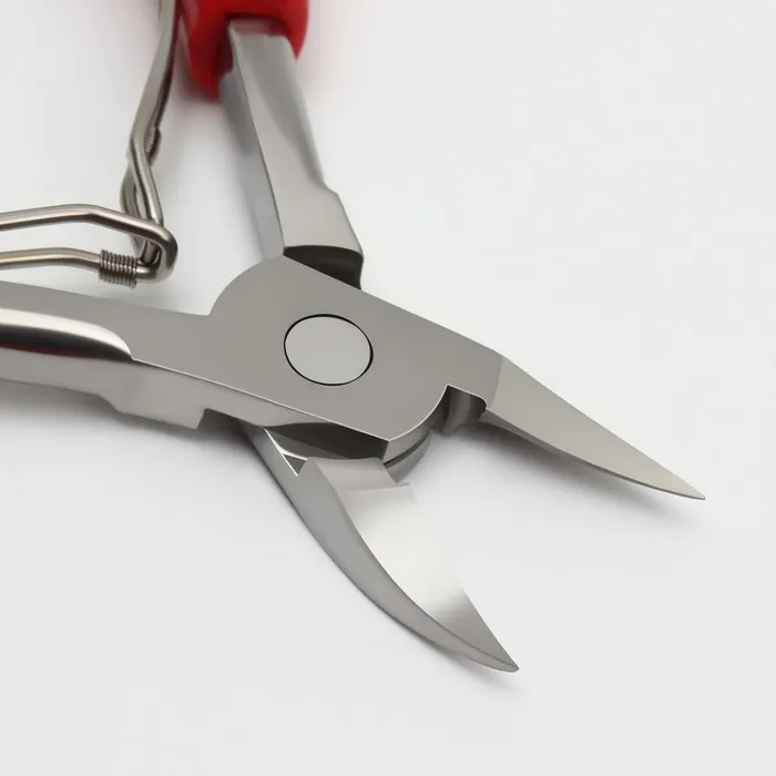 Основная особенность этих кусачек — изогнутое лезвие длиной 17 мм, которое легко справляется даже с вросшими ногтями. Благодаря скрытой пружине, инструмент работает плавно, без лишнего усилия, что значительно снижает нагрузку на руки при длительном использовании. Прорезиненные пластиковые ручки не скользят, обеспечивая надежный захват, а заводская заточка гарантирует точное и аккуратное удаление излишков ногтя.