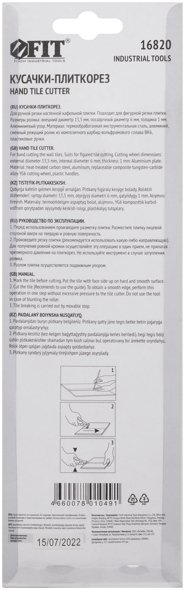 Выберите кусачки-плиткорез FIT 16820, чтобы обеспечить точность и надежность в работе с кафелем.
