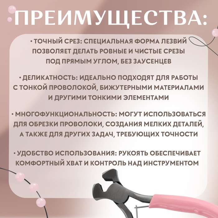 Кусачки торцевые, для рукоделия, 10.5×6.5 см, розовые — Характеристики